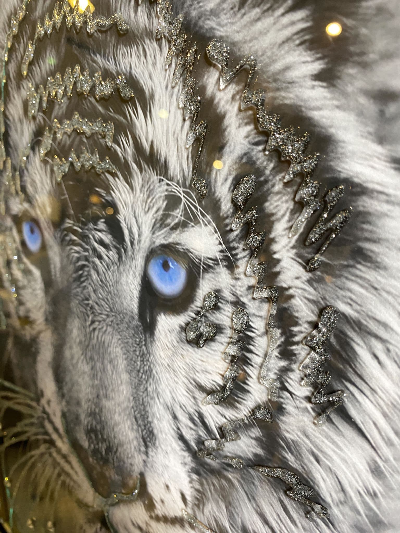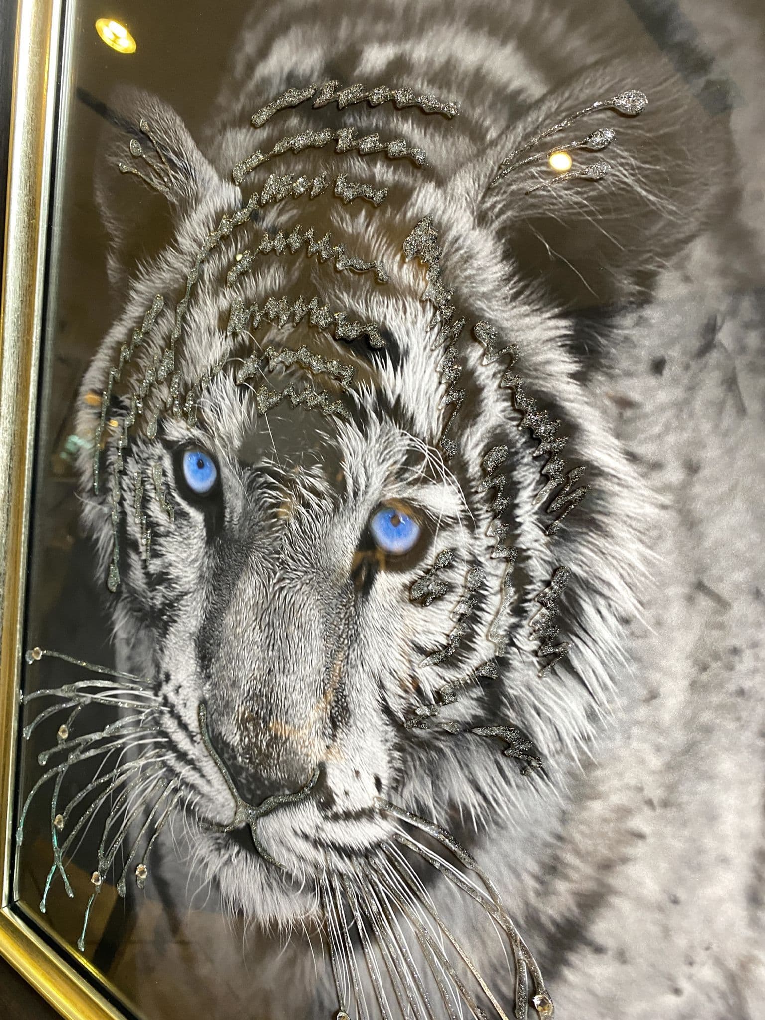 This picture features 'White Tiger', exhibiting a rich design with liquid details around the picture, creating a smart look for your home. Finished with a chic black frame.