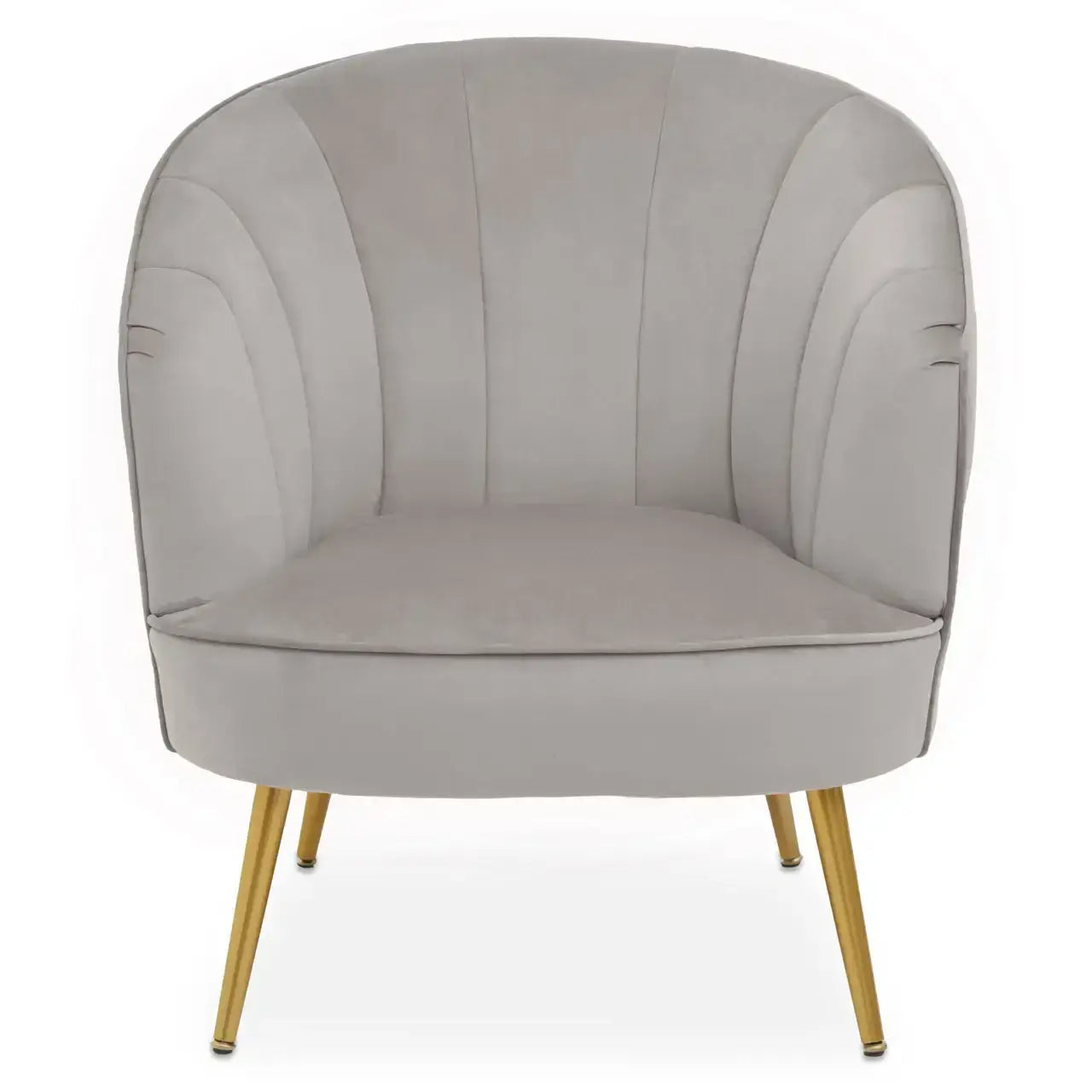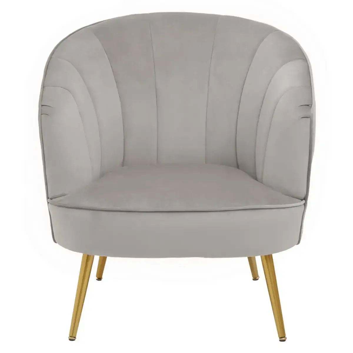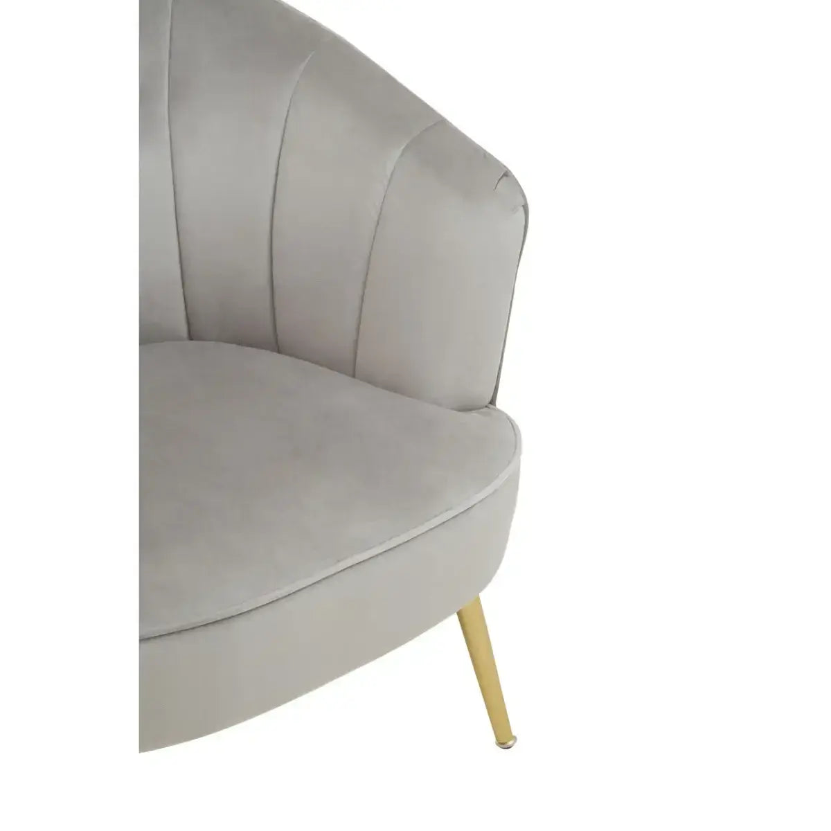 Elevate your space with the luxurious Yolanda Grey Velvet Chair, designed to bring a touch of contemporary glamour to any room. This stylish chair features soft, plush grey velvet upholstery and an elegant curved back with sloping armrests, offering both comfort and style. Resting atop sleek, gold-finished metal legs, it promises a sophisticated vibe for your living room, bedroom, or reading nook.