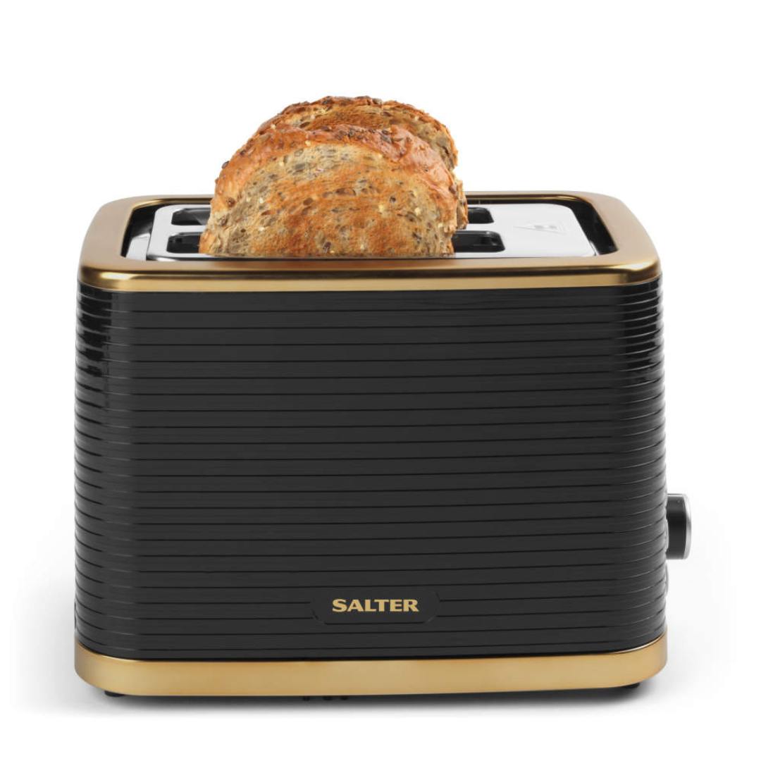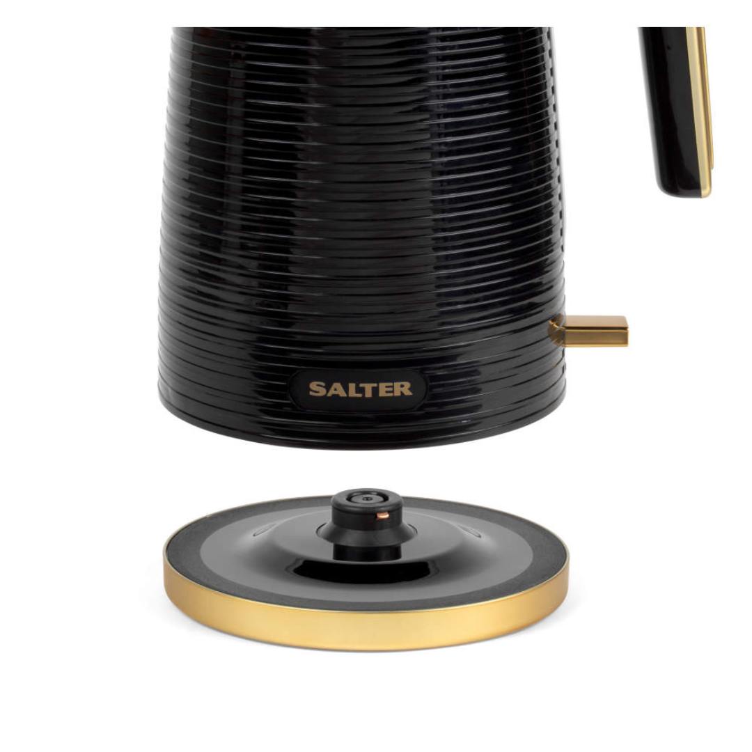 Refresh your countertop with the Salter Palermo Kettle & Toaster Set, a stunning matching pair finished in a sophisticated black and gold design. Ideal for new homeowners or those looking to upgrade their appliances, this set combines elegant aesthetics with high-performance features.
