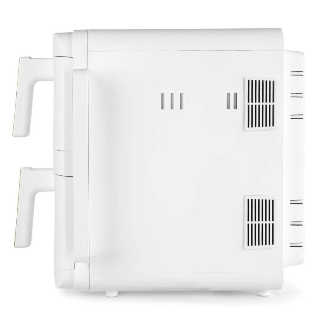 Despite its compact footprint, it boasts a generous 9L capacity split between two 4.5L drawers. With the included stainless-steel racks, you can cook across four levels simultaneously—perfect for air frying mains and sides together. The side-mounted digital LED touchscreen offers complete control with a simple dial, allowing you to adjust temperatures (60-230°C) or select from 9 cooking presets.