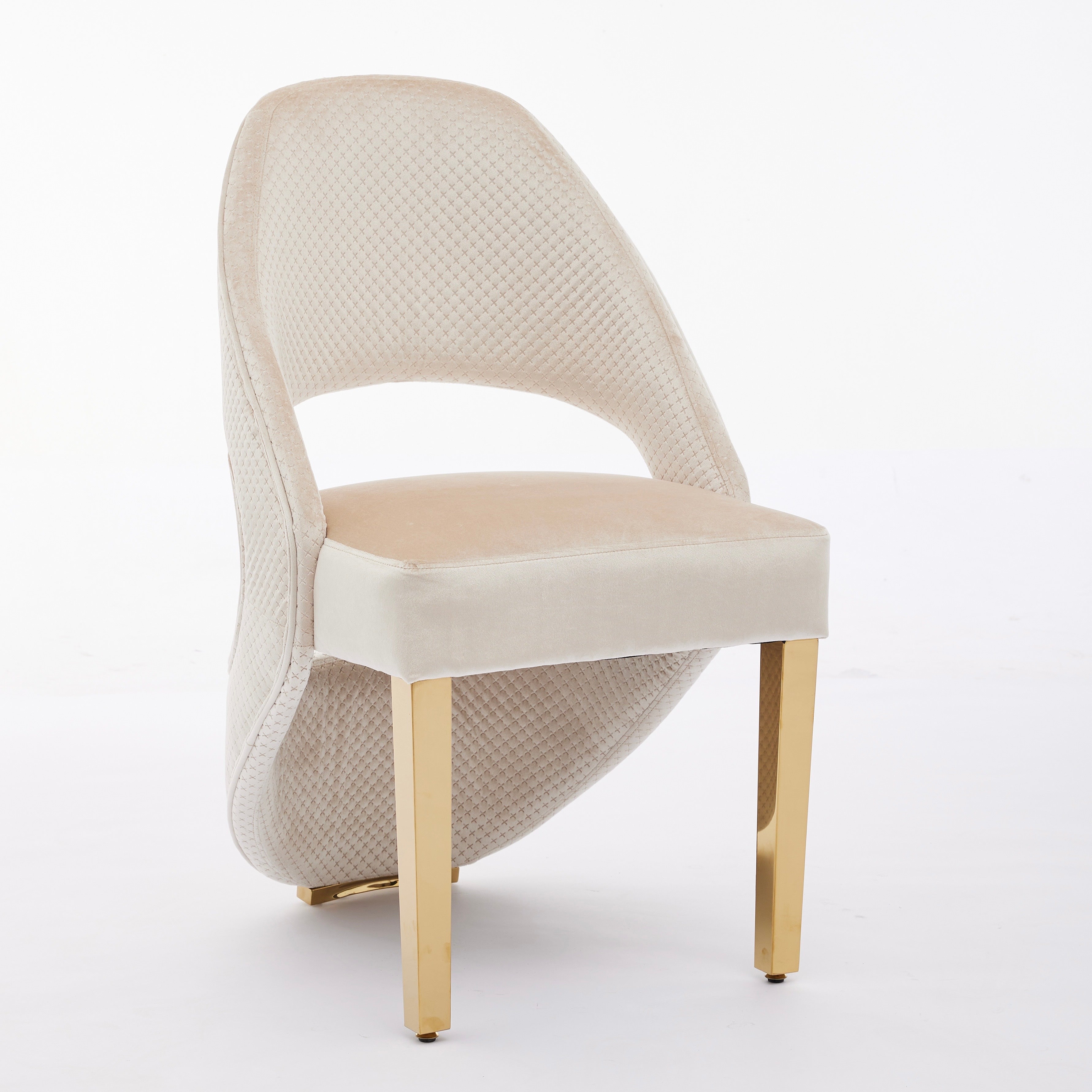 Infuse your dining space with timeless elegance and luxurious detail. The Santorini Dining Chairs by Maison Élan feature plush cream velvet upholstery combined with sleek gold-finished legs—offering a graceful blend of softness and sophistication perfect for upscale interiors.