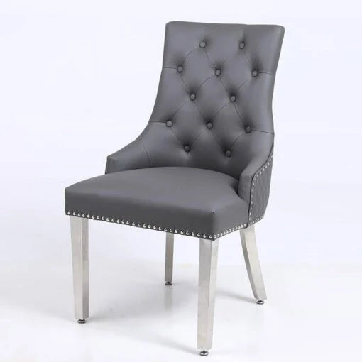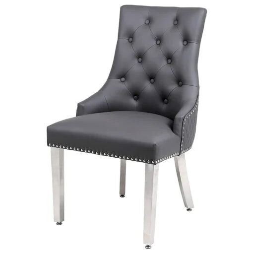 Enhance your space with the Set of 2 Minister Grey PU Leather Dining Chairs from Home Luxe Interior. Designed with elegance and comfort in mind, these chairs are perfect for dining areas, bedrooms, or dressing rooms.