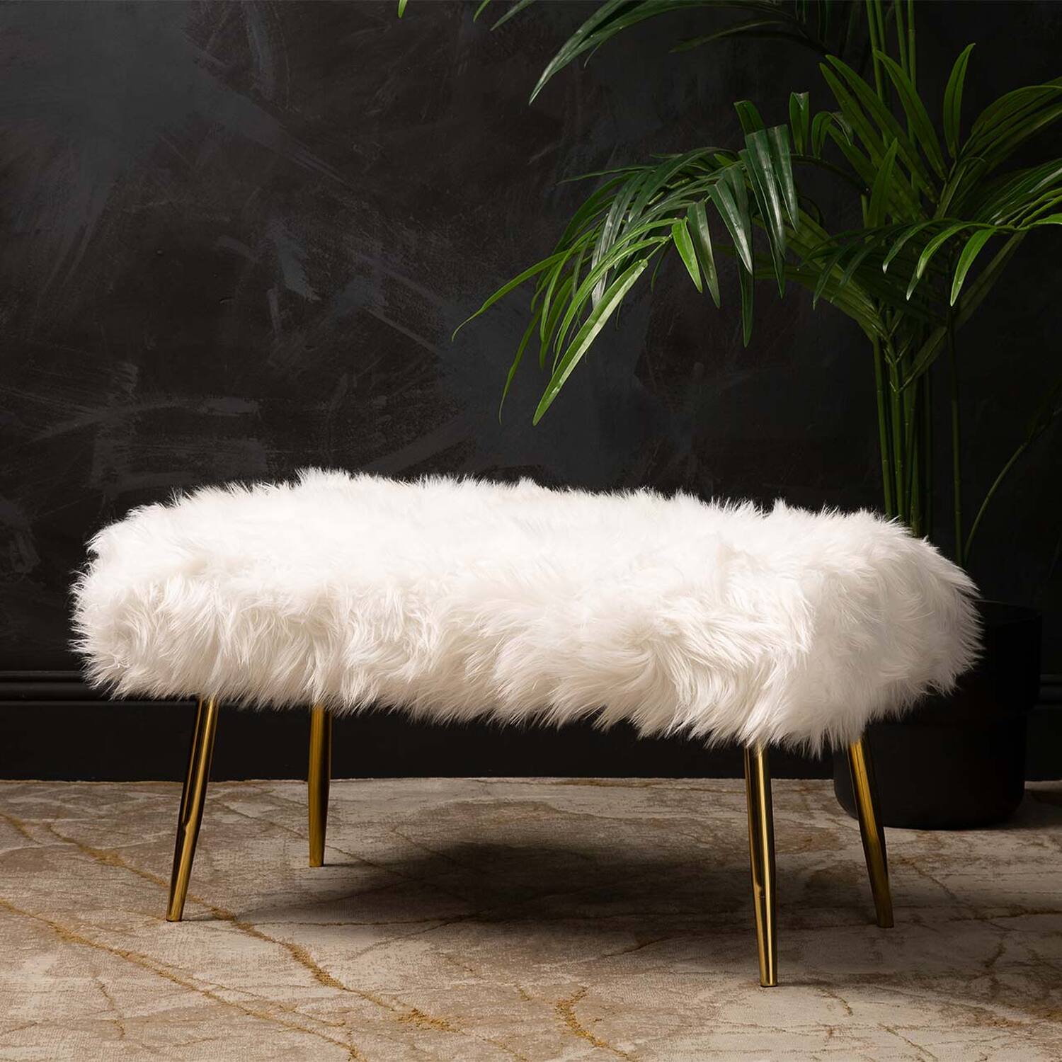 Add a statement of elegance and comfort to your bedroom with the Wide Faux Fur Bench for Bedroom Furniture – White from Home Luxe Interior. This versatile bench features plush faux fur upholstery and a modern stainless steel base that combines luxurious texture with clean, contemporary style — perfect for enhancing your bedroom’s aesthetic and function.
